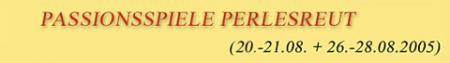 Für alle Perlesreuter und Freunde aus den Nachbargemeinden: Für die Passionsspiele Perlesreut 2005 werden noch mutige Männer für Soldaten und Palastwachen gesucht!!!! Wenn ihr Mut, Lust und Zeit habt bei dem wohl bis dato größten Freilichtspiel der Gemeinde Perlesreut und den einzigen Passionsspielen in der Diözese Passau dabei sein wollt, dann meldet euch einfach bei User Boxe, oder ruft Ihn direkt an unter 0160/8704201. Infos zu den Passionsspielen gibt es auch hier: www.passionsspiele-perlesreut.de